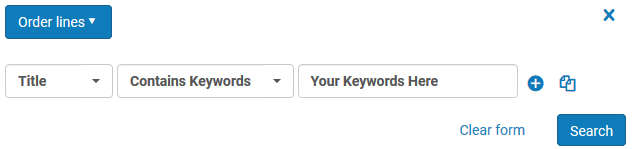 by Title Order Lines Advanced Search: Title – Contains Keywords – [keywords]