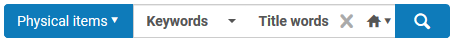 Portion of screenshot shows a Physical Items search box, with Keyword option selected, and a prompt to enter keywords from the title.