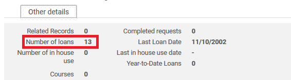 • Open the "Other Details" tab to see the items circulation counts.