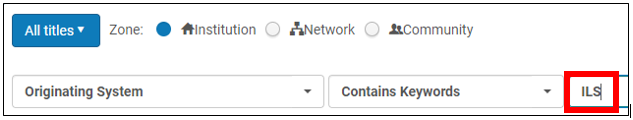 Advanced Search: Originating System - Contains Keywords - ILS