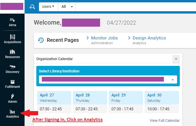 Alma Analytics - Lesson 1: Introducing Out-of-the-Box Searches from California State University. Video, ~3 minutes. Transcript with pictures. An introduction to built-in reports in Alma Analytics.