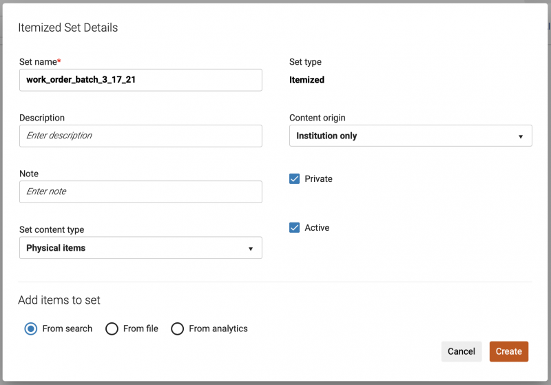 - Acquisitions work order that first has the status of Copy Cataloging and then a status of Physical Processing as an item is prepared to be shelf-ready.