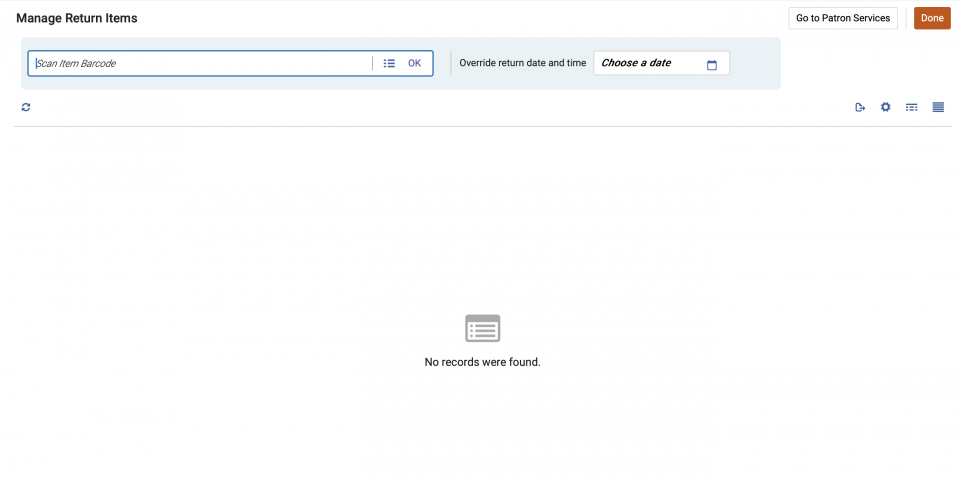 If you come across a missing or illegible barcode while checking an item in or out, you will have to manually look up the item. The procedure for this is the same in both cases, though the overall screens will look slightly different.
