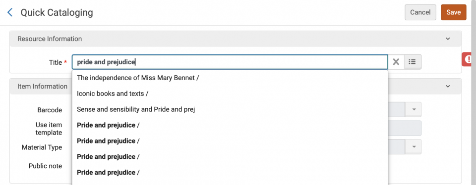 In the event that an item shows an "Item not found" error message during the check out process, follow these steps to create a basic record.