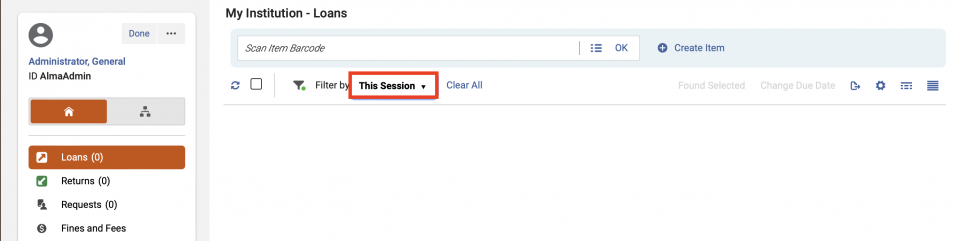 You can also report on in-house loans in Alma Analytics in the Fulfillment Subject Area.