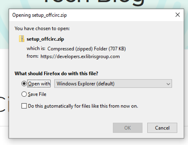 Once you click on the page text to download the Offline circulation utility, this pops up: