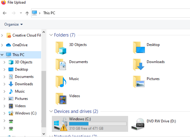 - Click the file to the right hand side of the file name box, to upload a file from the C: drive
