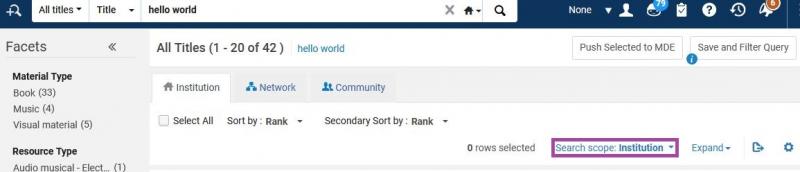 Normally, the institution zone search provides results only for an institution’s local inventory.