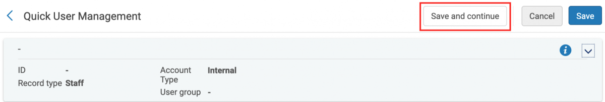 Note that if some of your library staff users are already Internal Alma users not managed Externally by SIS processes, and they have the User Administrator or User Manager role, your library could designate that those individuals will toggle other staff that are managed Externally, if needed, should your campus single sign-on system go down for a prolonged period. In this case, your library does not need to create a backup administrative account if you'd prefer not to and to reduce the number of Named Users.
